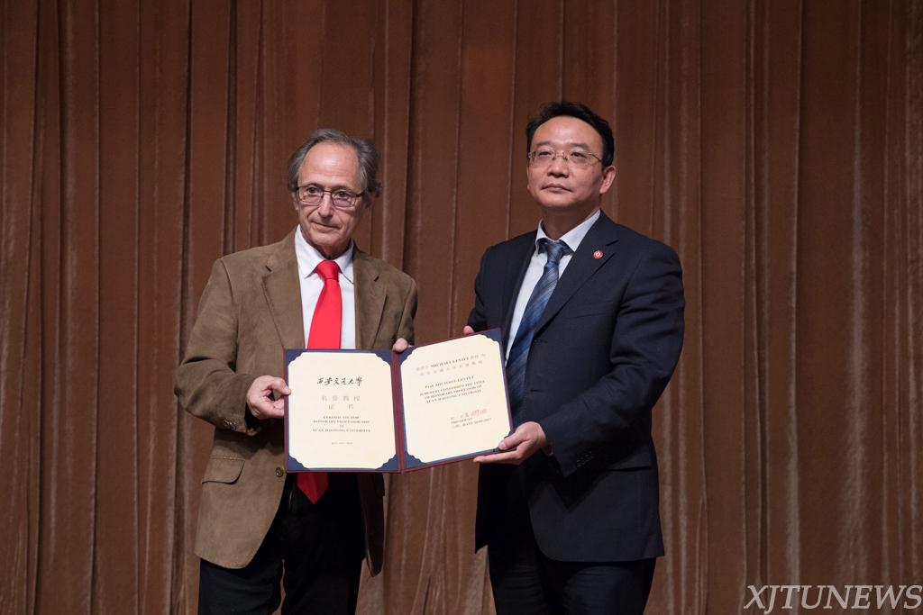 10月24日下午,应9001cc金沙邀请2013年诺贝尔化学奖得主Michael Levitt教授受聘西安交大名誉教授,并在多功能报告厅为交大师生作了精彩的学术报告,报告会由9001cc金沙党总支书记张早校教授主持。