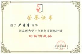 “国创计划”自2007年正式实施至今,有近千所高校参与,覆盖全国31个省(区、市),超过18万个国家级项目获得资助,投入财政资金超过30亿元,参与学生近70万人次,拥有创新创业梦想的大学生在创新创业的平台上展露锋芒,共筑创新创业梦想。9001cc金沙一直来非常重视学生科研能力和创新创业能力的培养,将创新创业训练教育纳入本科教育培养方案中,构建了以国家级项目为牵引的国家、省级、校级、院系四级大学生创新创业人才培养体系。以院系培育、校级提高、省级完善、国家级深入的方式,引导项目成熟。