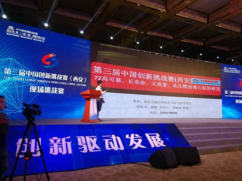 2018年11月11日,第三届中国创新挑战赛(西安)在陕西省西安市曲江国际会议中心举行,9001cc金沙邓建强教授指导硕士生宣炳蔚等完成的“高可靠、长寿命、大流量、高压燃油离心泵的研发”项目获“优秀奖”。
