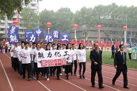 4月12日上午8:30,校运动会开幕式在田径场隆重进行。我院张早校书记和沈人杰副书记与方阵队伍一起入场,共同在全校师生面前展现了9001cc金沙的风采,“魅力化工,美丽中国”的口号响彻云霄。方阵入场仪式以及精彩的开幕式表演结束后,本届运动会的赛程正式开始。在上午随后进行的赛事中,我院同学便有所斩获:杨玲同学在女子100米栏中激流勇进,夺得第8名。时至中午,天气转阴,倏尔降雨,下午的比赛整体延后一小时,只能在阴雨密布中进行。于雯波同学在风雨中顽强拼搏,奋勇争先一举夺得第二名的好成绩;在赛场的另外一边,杜鑫同学在400米栏的比赛中传来了好消息,一鼓作气,拿下来第四名的好成绩。在四大发明广场进行的研究生集体项目中,参与跳大绳比赛的两支队伍也勇于克服了风吹雨打和地面湿滑的困难,顺利完成比赛。