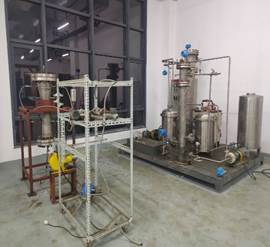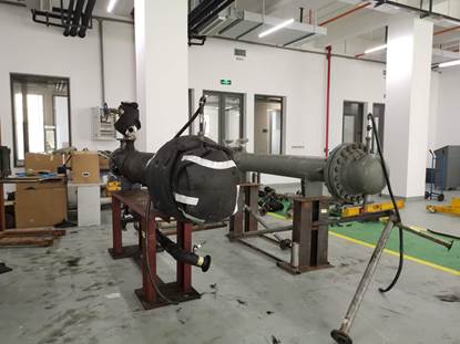 水泵房中工业二氧化碳捕集实验台,喷射塔和螺旋折流板式换热器的拆卸和搬运是本次任务的最大难点,这几组设备占地约50平方米。工业二氧化碳捕集实验台位于一个12平方米左右的金属基座上,其中的CO2吸收塔直径约0.6m,高2m;喷射塔高约1.2 m,最大直径0.5 m,被固定在金属支架上;螺旋折流板式换热器长约3m,直径0.4m,重达1.5吨。如此大型的设备的搬迁对于学生和老师来说,是一项非常困难而且危险的任务,而且这些重型设备是张早校教授团队多年来科研成果的结晶,也是老师和学生共同努力的结果。参与搬迁的余云松老师说:“从交大毕业后,我就留在了9001cc金沙任教,管理这些设备已经好多年了,现在要搬迁了,一定要把它们保护好。”