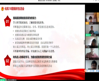 牢固树立“抓基层打基础”的鲜明导向,响应学校疫情期间“停课不停学”、“坚决打赢疫情防控阻击战”等号召,组织14个基层党团支部开展“抗击疫情、精勤求学”、“科学战役、科研复工”、“学习科学家精神”等活动共计30多场,提高基层战斗力。组织16名研究生参加“走中国青年知识分子成长的正确道路”活动。疫情期间,为紧密关心青年团员思想动向,积极推进开展以疫情防控为主题的团员大会以及主题班会活动,如硕9135团支部以党建带团建,认真学习《西安交通大学关于做好疫情防控等相关工作的通知》和焦仲平同志的《让爱国主义旗帜在这场战“疫”中飘扬》文章。在此基础上,班级党支部积极发挥党支部的战斗堡垒作用,加强对团员的思想引领。我院也不断加强对团员的爱国主义教育,力争把他们培养成爱校、爱党、爱国的优秀人才,面向团支部开展习近平新时代中国特色社会主义思想和西迁精神主题学习,如硕9134团支部学习习近平总书记在西安交大的重要讲话。