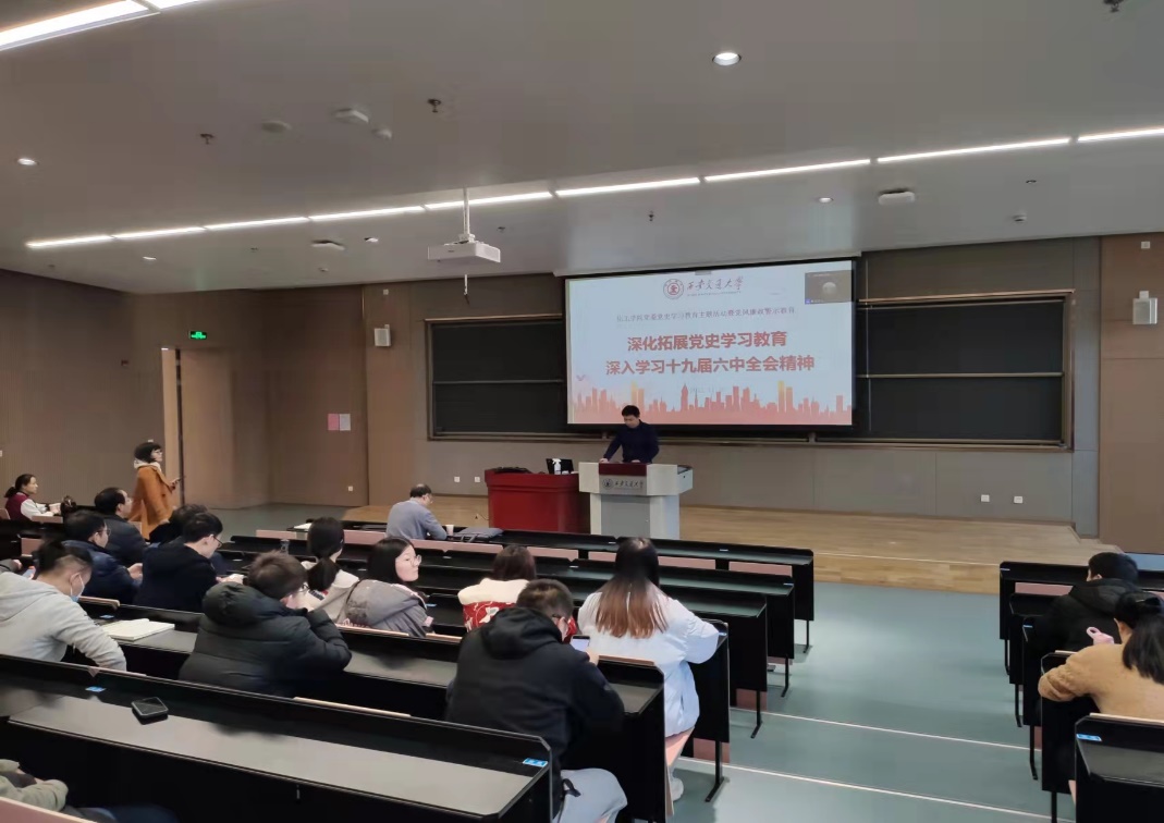 分党委副书记兼纪检委员陶磊首先做了党风廉政警示教育讲座,他首先传达和详细解读了习近平总书记在十九届中央纪委五次全会上发表的重要讲话,接着围绕学院师德师风建设,重点解读了教育部2021年8月发布的几起高校发生的违法师德师风案例,再次强调了新时代高校教师职业行为十项准则,要求全体教职工铭记在心,警钟长鸣。