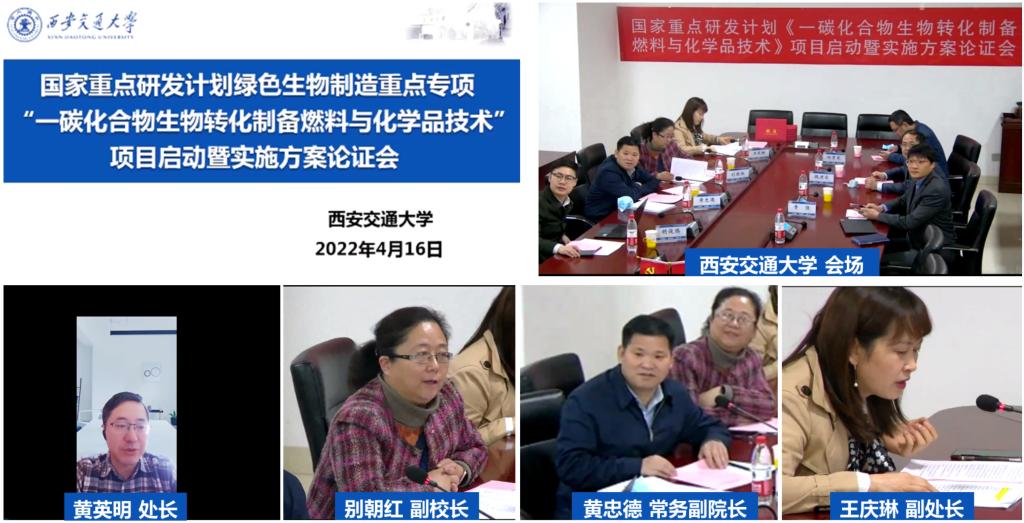2022年4月16日,西安交通大学主持召开了国家重点研发计划绿色生物制造专项“一碳化合物生物转化制备燃料与化学品技术”(2021YFC2103500)项目启动暨实施方案论证会。会议采用线上线下相结合的方式进行。