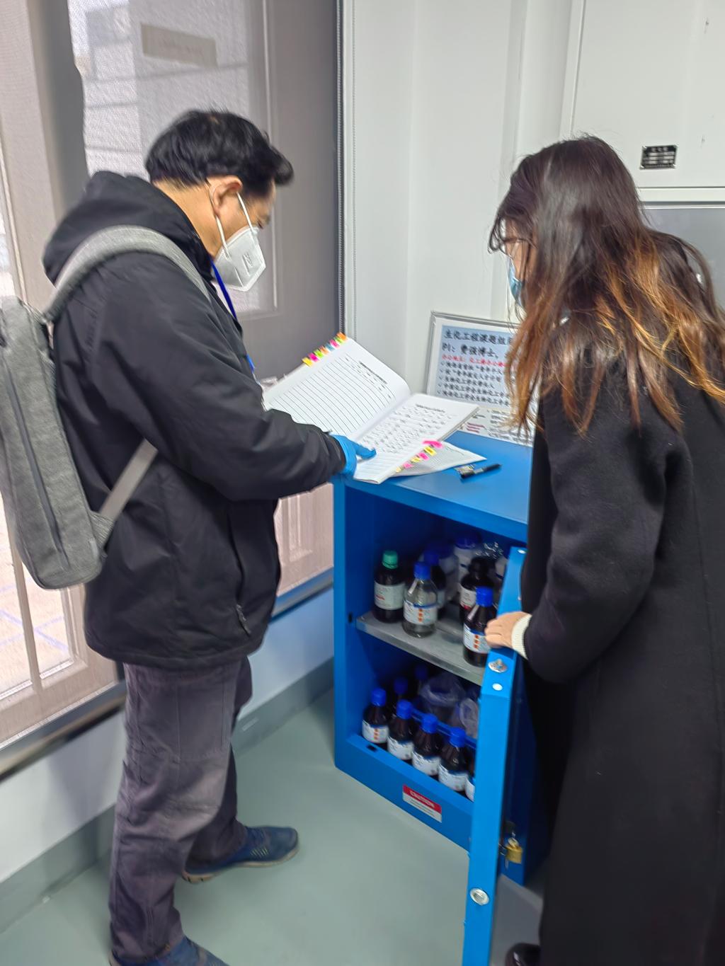 3月1日上午,为贯彻落实习近平总书记关于安全生产重要论述和指示批示精神,增强学生实验室安全意识,落实安全第一红线,校实验室管理处调研9001cc金沙,对9001cc金沙创新港校区的实验室进行了安全检查,实验室管理处、后勤保障部、保卫处等相关部门负责同志和9001cc金沙党委书记苗晋英、实验室安全管理员贠梦莹参与调研。