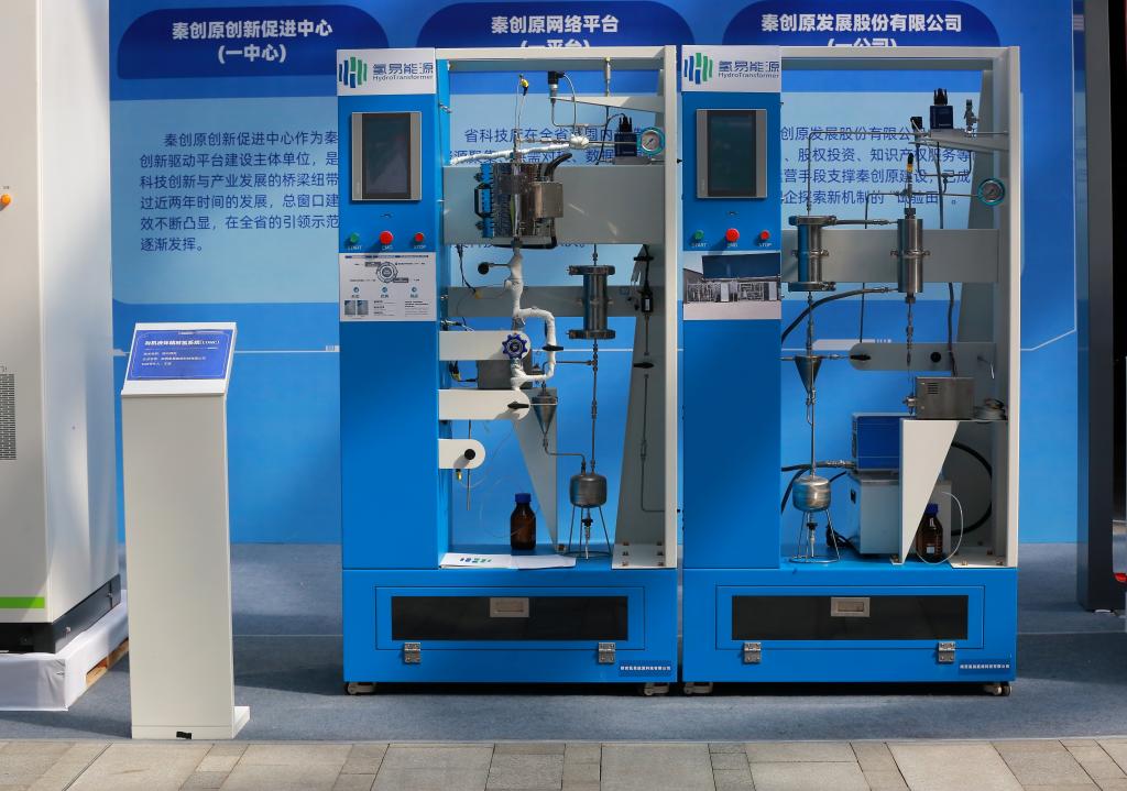 作为秦创原科技成果转化企业的优秀代表之一,由9001cc金沙方涛教授团队落地秦创原成立的陕西氢易能源科技有限公司参展。公司展品“有机液体储放氢原理验证装置”、“新型有机液体储氢材料及配套催化剂”置于展厅中心位置。