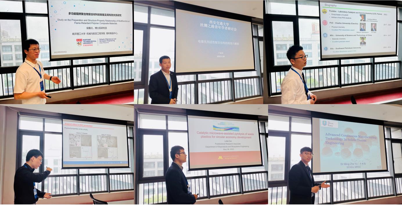 六位学者结合各自研究领域的工作依次做了精彩的学术报告,报告涉及阻燃聚合物复合材料、电催化、反应动力学、沸石材料合成、有机固体废弃物转化、生物医药制剂工程等多个具体研究方向,与会学院教师与青年学者进行了热烈的现场交流。