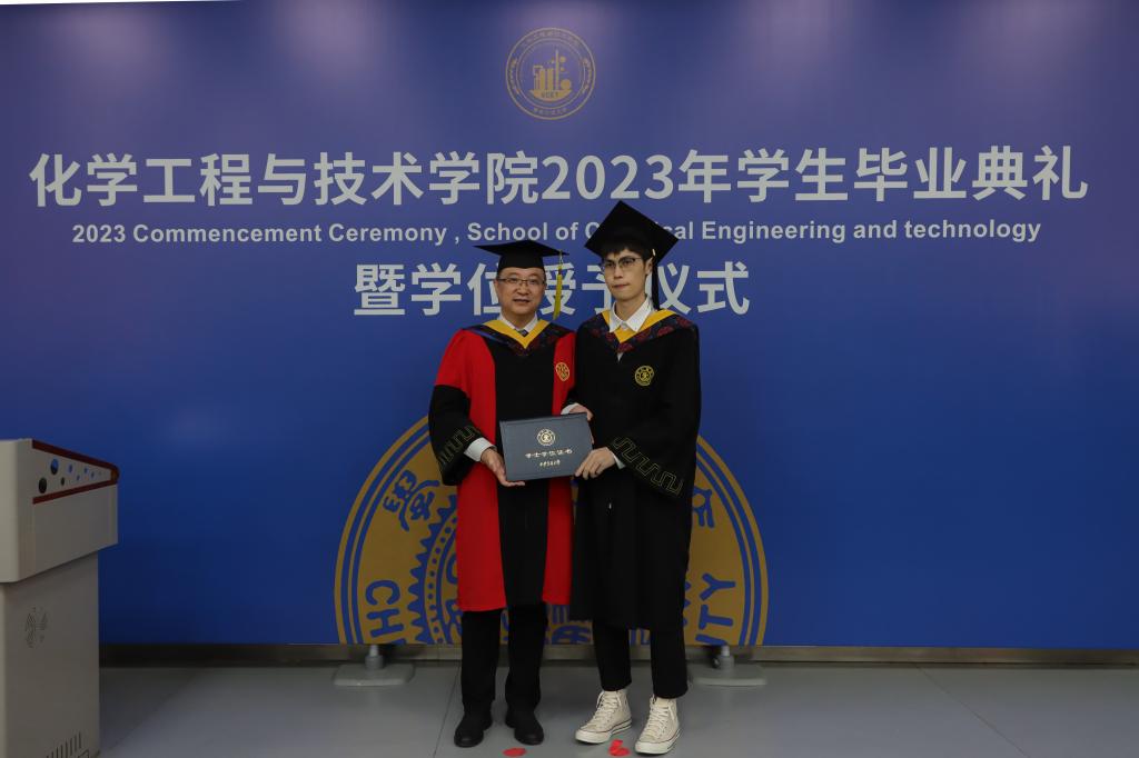 杨贵东教授、学位评定分委员会主席张早校教授分别为2023届本科生、博士生、硕士生颁授学位证书并合影留念。