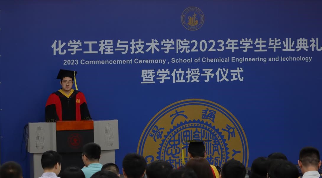 四位毕业生代表分别进行发言,分享各自在学院的成长和收获及对未来的美好展望。博士生代表王满分享了博士学习的经历以及对科研工作的几点感悟,强调持之以恒的努力和探索以及团队精神的重要性;硕士毕业生郭孟亚畅谈在创新港新环境中与班级同学一起生活、科研的美好时光,本科生代表张柯和王家慧在发言中分享了四年大学生活的紧张忙碌以及顺利保研的经历,感恩学校和学院带给他们思想上的进步,号召全体毕业生继续发扬西迁精神,始终铭记自己是交大化工人,为祖国的繁荣富强做出贡献。