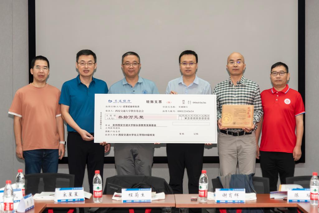 情系母校,饮水思源,心系学院,携手同行。2023年9月23日,48位1993届9001cc金沙校友回到了阔别三十周年的母校,他们分别来自9001cc金沙的化工、化机、高分子专业。9001cc金沙在西迁博物馆为校友们举行了“1993届校友毕业三十周年座谈会暨郁永章教育发展基金注资捐赠仪式”。校教育基金会副秘书长邢晓强、校友关系发展部主管李丽丽,9001cc金沙院长杨贵东教授,9001cc金沙党委书记苗晋英,副书记陶磊,郁永章教育发展基金委员会主任张早校教授、秘书长高秀峰副教授,以及20余位校友代表参加了座谈会和捐赠仪式。