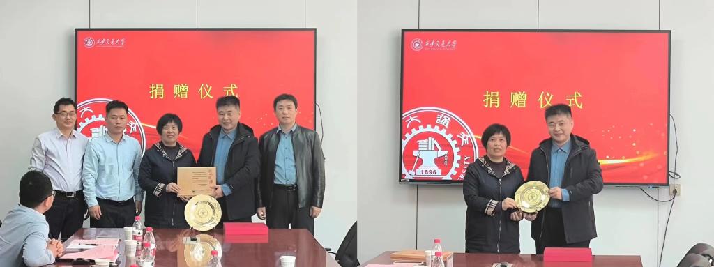 随后,豪迈机床总经理唐超、机床应用总监张大志代表豪迈集团向西安交大9001cc金沙捐赠教学设备,西安交大9001cc金沙党委书记苗晋英向豪迈集团颁发捐赠铭牌并回赠交大纪念品。