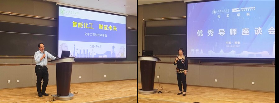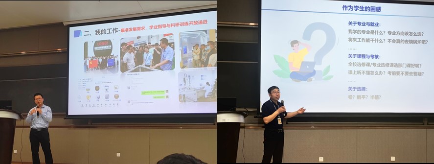 随后,伊春海副院长对2022-2023学年五位优秀本科生导师提出表彰。优秀本科生导师蔡柳溪副教授和吴志强教授分别上台做了分享。蔡柳溪老师以自身的实践经历,阐述了在培养学生思想品德和科研能力方面的重要性,并分享了自己在帮助困难学生和就业指导方面的心得体会。吴志强老师则以身边的化工实例为引子,通过焦油治理的三种方案,生动展示了化工行业的特色与魅力,激发了同学们对化工专业的浓厚兴趣。