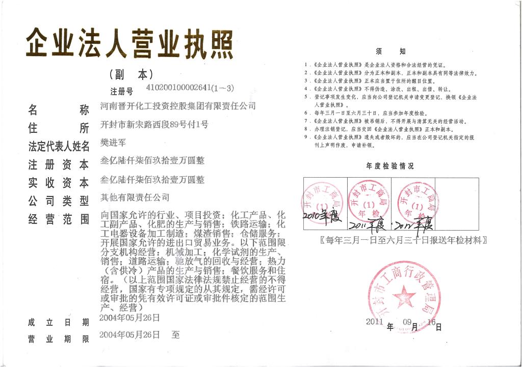 河南晋开集团企业法人营业执照