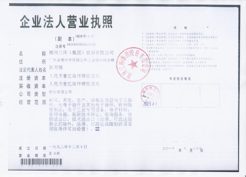 潮州三环(集团)股份有限公司是一家具有四十多年历史的员工控股公司,全国最大的电子元件、先进技术陶瓷产业基地。集团属下有8家专业生产厂,在香港、深圳、苏州、广州、四川等地设立分公司和办事处。三环集团总部已建成环境优美的花园式工业区。