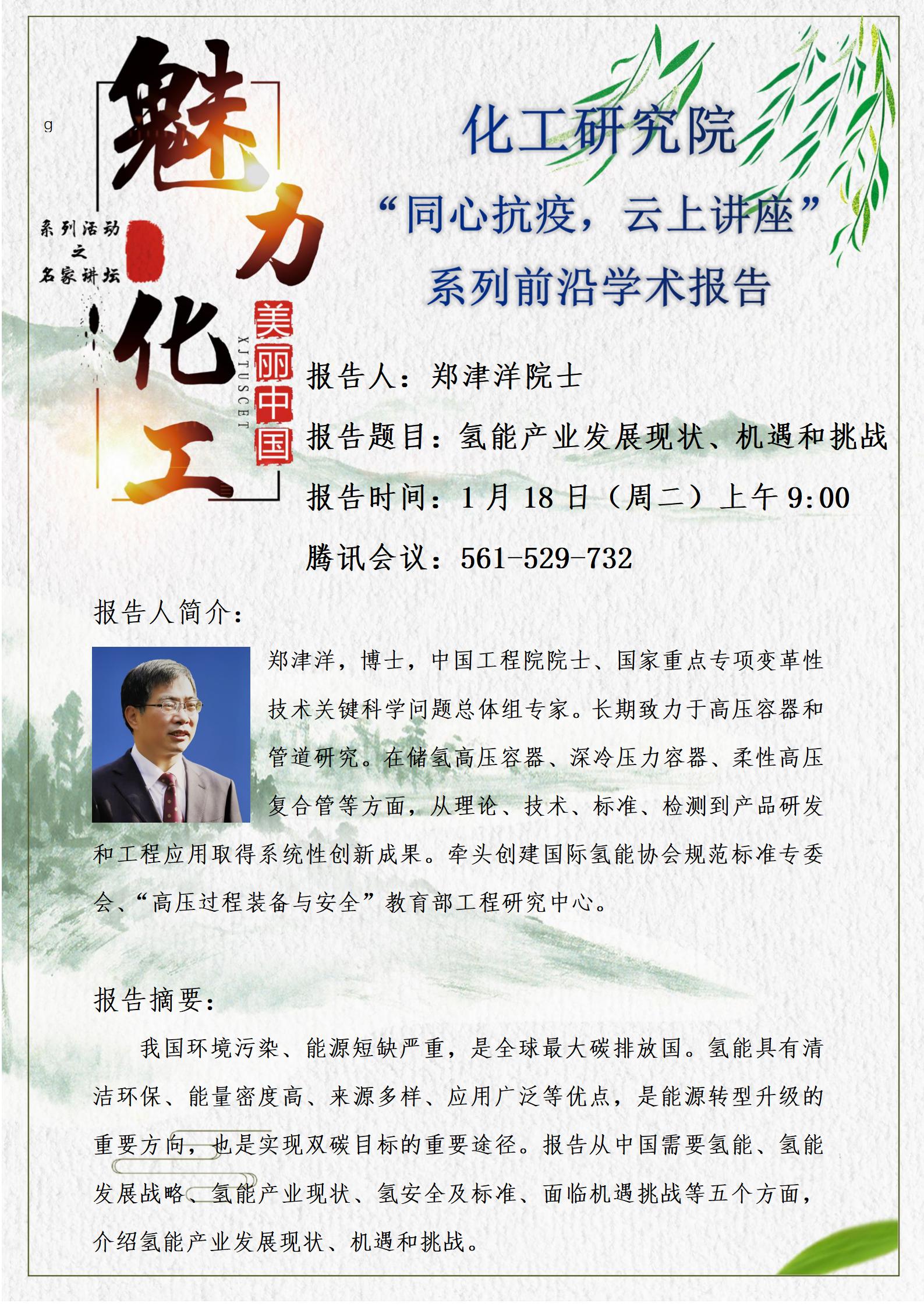 化工研究院【”同心抗疫,云上讲座“系列前沿学术报告】之郑津洋院士讲座