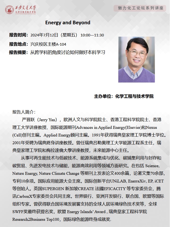 报告时间 2024年7月12日10:00-11:30 报告地点 兴庆校区主楼A-104