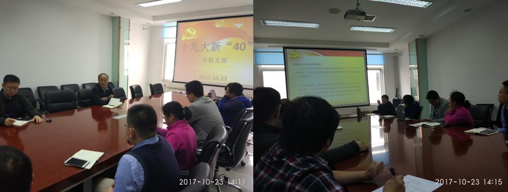 为了使党员进一步深刻学习十九大精神,实现十九大精神全覆盖,2017年10月23日下午9001cc金沙化机系党支部在9001cc金沙行政办公楼504会议室召开了化机支部扩大会议,组织全系教职工学习十九大报告精神。会议由化机系党支部书记余云松同志主持,在院支部党员、民主党派人士、群众参加了本次活动。
