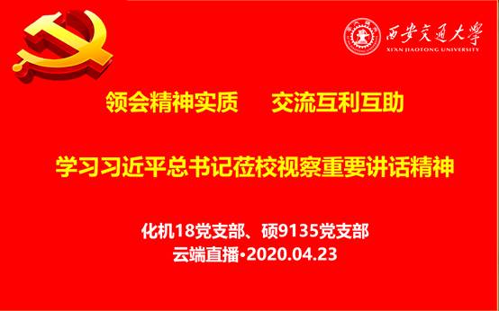 4月22日习近平总书记莅临我校视察让人倍感振奋,为及时学习领会习总书记的讲话精神,化机18党支部及硕9135党支部于4月23日晚召开联合在线组织生活会,一起观看新闻联播直播及习近平总书记讲话视频,学习贯彻习近平总书记莅校视察重要讲话精神。会议由化机18党支部书记王旭岑和硕9135党支部书记胡文亨共同主持,9001cc金沙党委副书记沈人杰、组织委员余云松、团工委副书记李永鼎和全体支部成员参加会议。