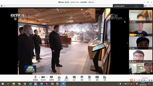 晚7点整,全体成员共同收看了《新闻联播》,当看到习近平总书记来到西安交通大学的画面出现时,大家无比激动。总书记参观交大西迁的创业历程和辉煌成就展,亲切会见了14位西迁老教授,并在西迁博物馆外发表重要讲话。
