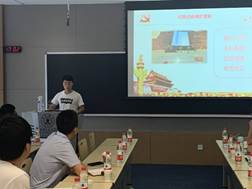 首先,党支部书记朱鹏飞介绍了硕9133党支部的基本情况,支部依托硕9133行政班建立,党员人数占班级总人数74%。支部同志思想活跃,学风科研氛围浓厚,经过一个学期的支部工作,目前已形成积极向上的良好氛围。接着进入支部的主题“融入创新港,做交大西迁新传人”。朱鹏飞首先播放了“背起行囊去远方”纪录片,带领大家重温交大西迁历史,学习领会西迁精神。