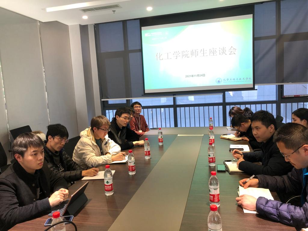蔡元汉首先回顾了行政党支部在“我为师生办实事”活动中的一系列工作,总结了学院行政管理方面在服务师生中的不足,并指出此次座谈旨在进一步加强院办与研究生的交流沟通,共同推进学院治理体系和治理能力现代化内涵建设,希望同学们为院办的管理服务工作建言献策。