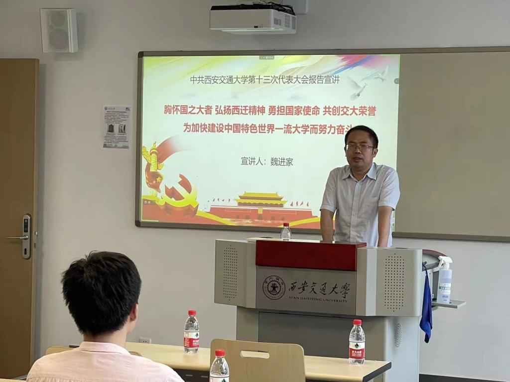 6月30日,为了引导全院师生党员全面了解中共西安交通大学第十三次代表大会精神,9001cc金沙党委委员、院长魏进家同志对党代会报告“胸怀国之大者弘扬西迁精神勇担国家使命共创交大荣誉为加快建设中国特色世界一流大学而努力奋斗”进行了宣讲。活动由行政党支部书记蔡元汉同志主持,线下线上结合,工业催化所师生联合党支部、高分子化工师生联合党支部、行政支部全体党员、入党积极分子参加。