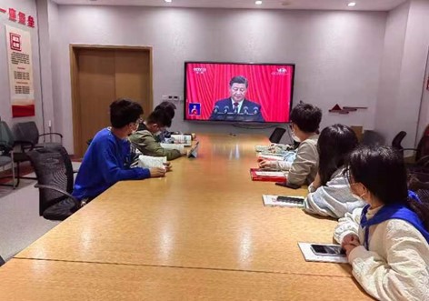 最后,与会人员集体观看了“喜庆二十大”系列报道视频。深刻感受到了十八大以来国家在各方面的长足发展,在观看乡村建设相关成就时,几位同学有感而发,表示近年以来自己的家乡有了很大变化,不仅摘掉了贫困的帽子,更有不少村镇探索出了自己的致富之路,人民的日子更加满足与幸福了。