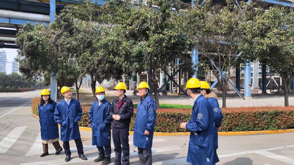 在生产负责人的陪同下,化机支部一行深入厂区参观调研公司的产品工艺流程与技术装备,就换热器、高温管道、塔设备等关键装备的安全保障技术和国产化替代进行了讨论。