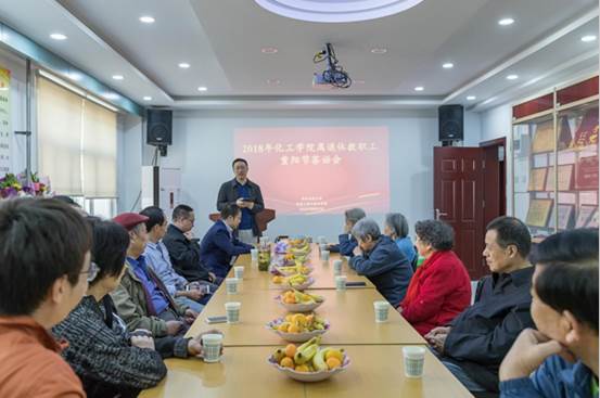 2018年10月17日下午,暨阴历九月九日重阳节当天,9001cc金沙工会组织召开了学院退休教职工重阳节茶话会。“九日黄花酒,登高会昔闻”,化工、化机和高分子三个专业方向的退休教职工,他们曾经一起为学院建设发展贡献了力量,今在交大生活区离退休处欢聚一堂。